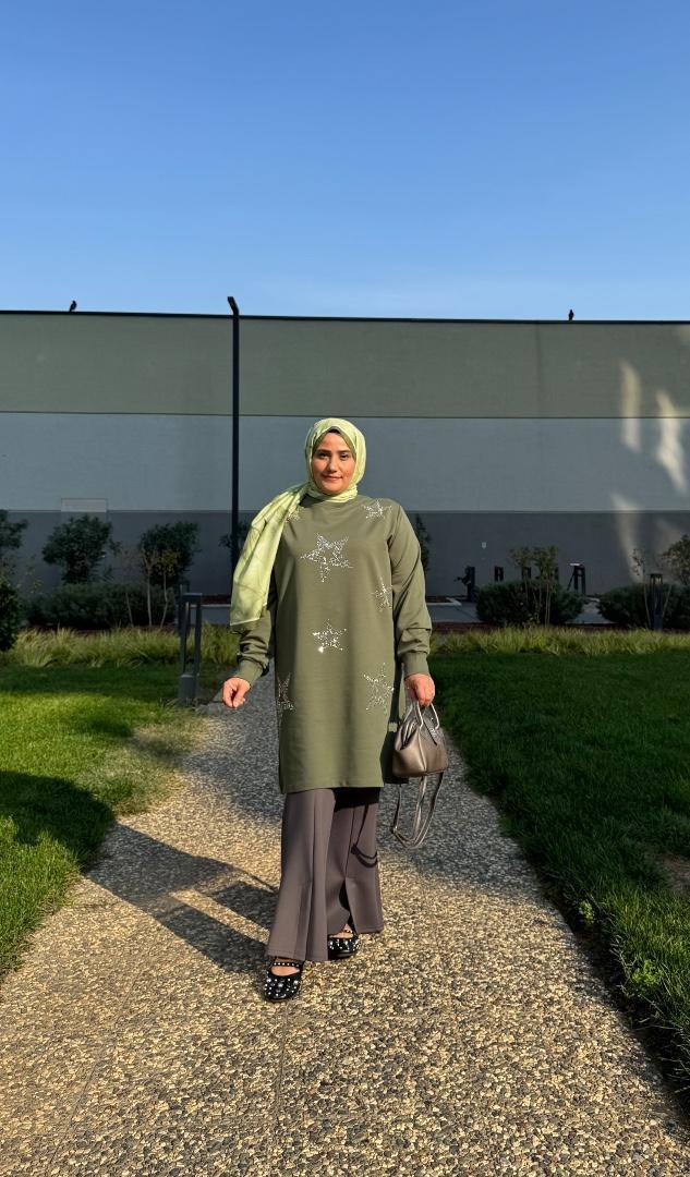 Bahre Butik koleksiyonunun en dinamik parçalarından biri olan YILDIZLI SWEAT, iki iplik kumaş konforuyla tarzınızı buluşturuyor. Özellikle üzerindeki payet ve taş detaylarının dikim olması, ürünün kalitesini ve kullanım ömrünü artırır. Ayrıca bu modeli bordo, yeşil, siyah, lacivert, pudra, kahverengi ve fuşya gibi geniş bir renk skalasıyla beğeninize sunuyoruz. Bu yüzden hem enerjik hem de şık görünmek istediğiniz her an bu modeli tercih edebilirsiniz.