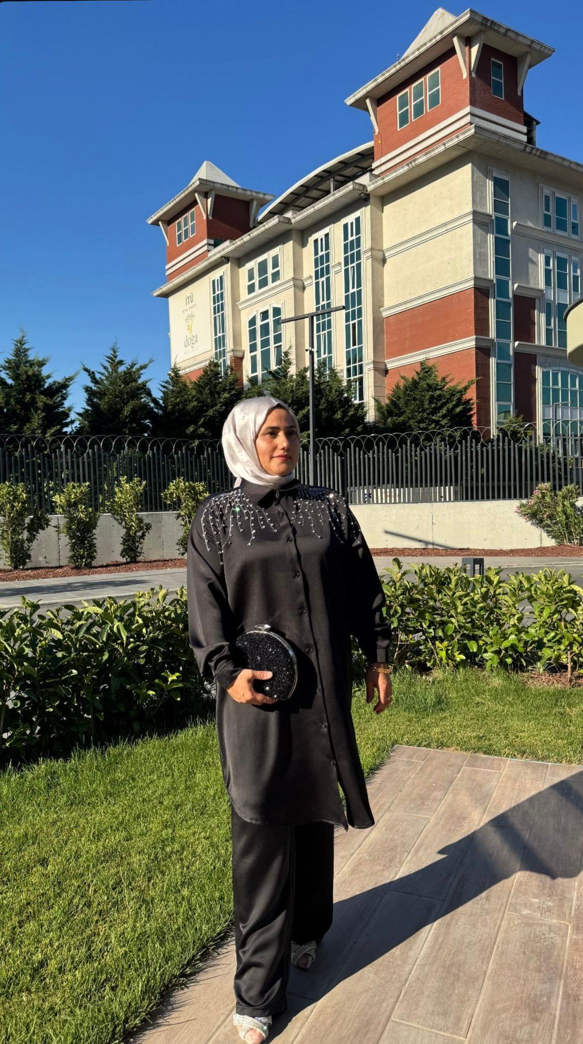 TUĞBA TAKIM modelini kendinden emin ve zarif bir stil için hazırladık. Özellikle İtalyan saten krep kumaşın asaletini bu tasarımda buluşturduk. Bu özel takımı LACİVERT ve SİYAH renk seçenekleriyle beğeninize sunuyoruz. Ayrıca kumaşın parlak dokusu her ortamda fark edilmenizi sağlıyor. Bu yüzden şıklığınızı taçlandırmak için TUĞBA TAKIM modelini güvenle tercih edebilirsiniz.